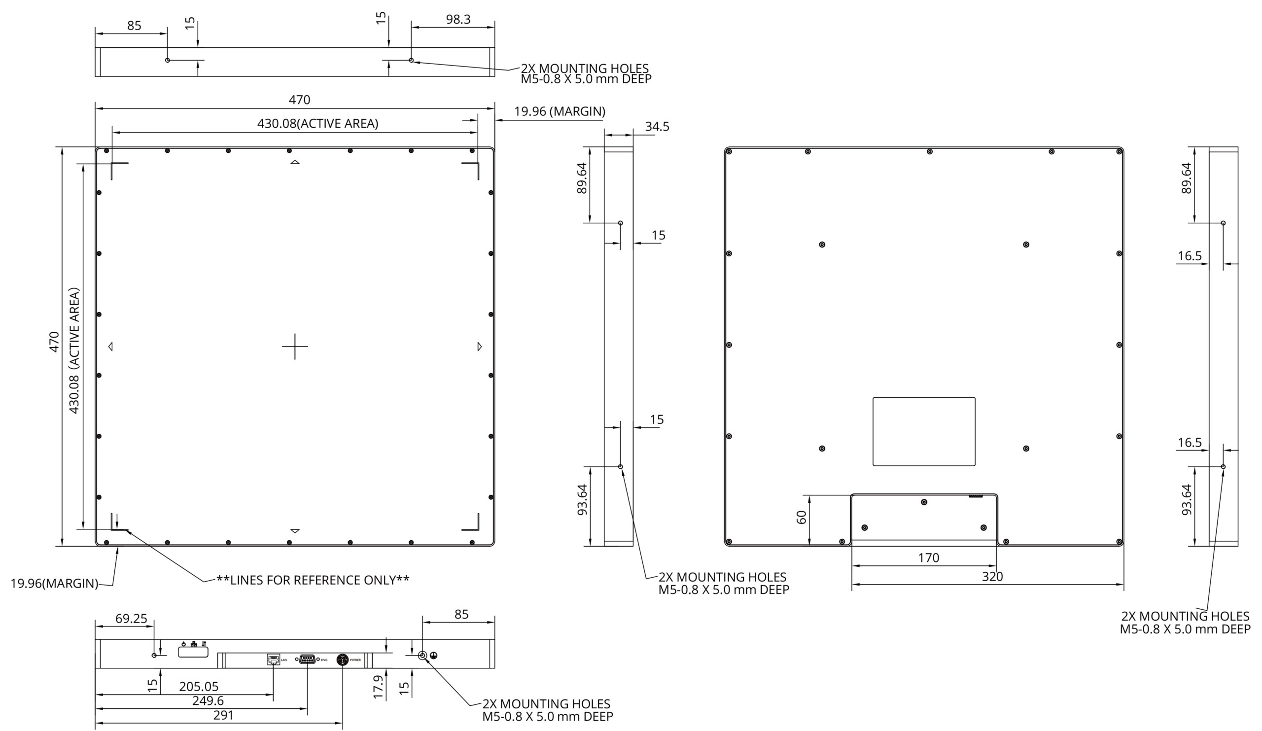 | Active area | 430 x 430 mm |
