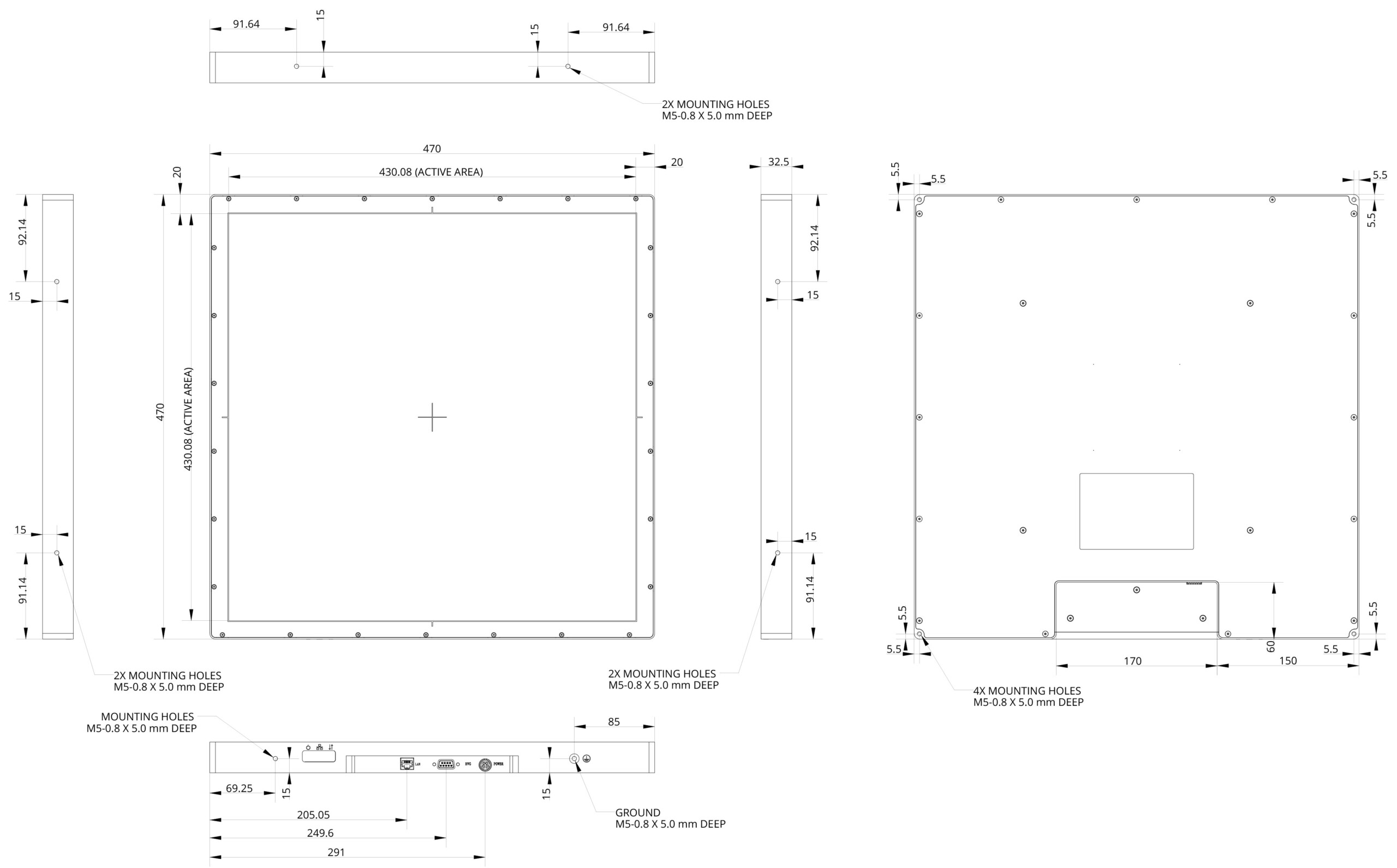 | Active area | 430 x 430 mm |